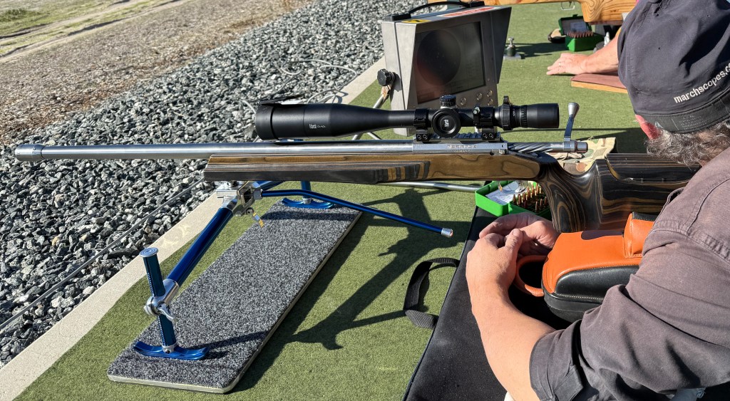 This discipline uses telescopic magnification, similar to F-TR but is allowed to use an adjustable rest, with 3 points of contact on the ground. The rifle free recoils sliding on the rest and rear bag, allowing very high precision. In F-TR the rest is attached to the rifle.