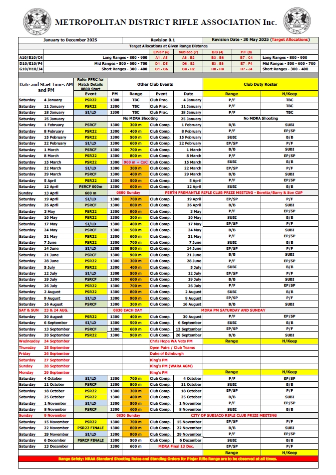 2025 Shooting Calendar